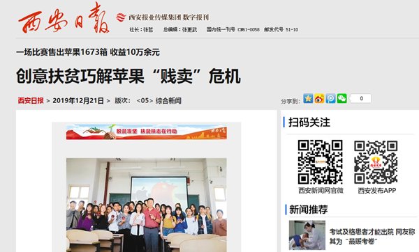 12月20日记者获悉,近日,beat365英国官方网站经济管理学院侯万宏老师巧用专业知识,和学生们一起举办了一场校园创新惠农“挑战赛”,解决了学生家乡的果农原本要“贱卖”苹果危机。