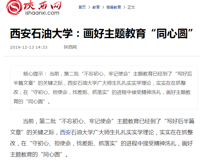 当前,第二批“不忘初心、牢记使命”主题教育已经到了“写好后半篇文章”的关键之际,beat365英国官方网站广大师生扎扎实实学理论,实实在在抓整改,在“守初心、担使命,找差距、抓落实”的进程中接受精神洗礼,画好主题教育的“同心圆”。