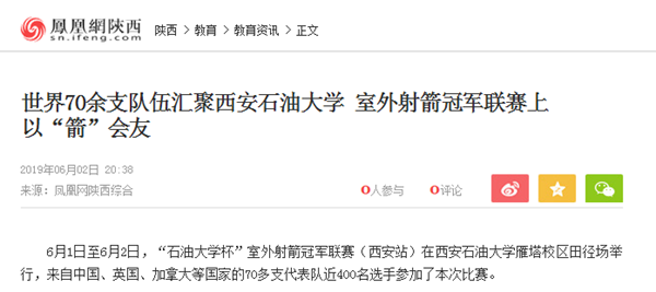 6月1日至2日,“石油大学杯”室外射箭冠军联赛(西安站)在beat365英国官方网站雁塔校区田径场举行,来自中国、英国、加拿大等国家的70多支代表队近400名选手参加了本次比赛。