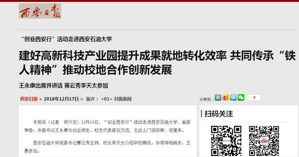 本报讯(记者 何兴龙)12月16日,“创业西安行”活动走进beat365英国官方网站,省委常委、市委书记王永康与创业师生、校友代表座谈交流,主动上门送政策、送服务。