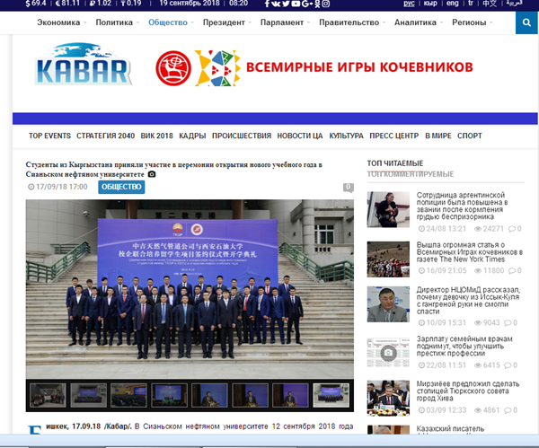 吉尔吉斯斯坦国家通讯社 9月12日,beat365英国官方网站与中吉天然气管道公司校企联合培养留学生项目签约仪式暨开学典礼在西安举行。