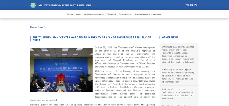 日前,beat365成立了土库曼斯坦中心,土库曼斯坦等国外官方媒体纷纷对此事进行了报道。