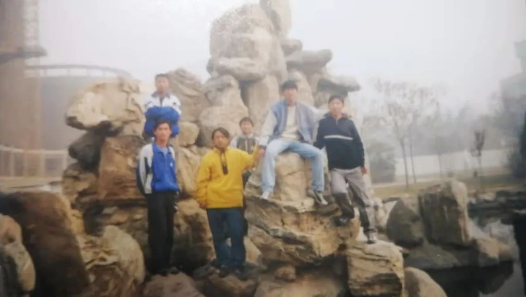 刘昕(右二)与同学在学校假山的留影