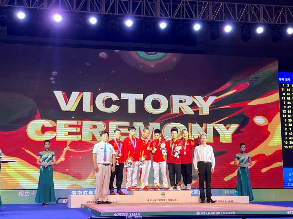 五人执裁,1人参赛,十四运会的…