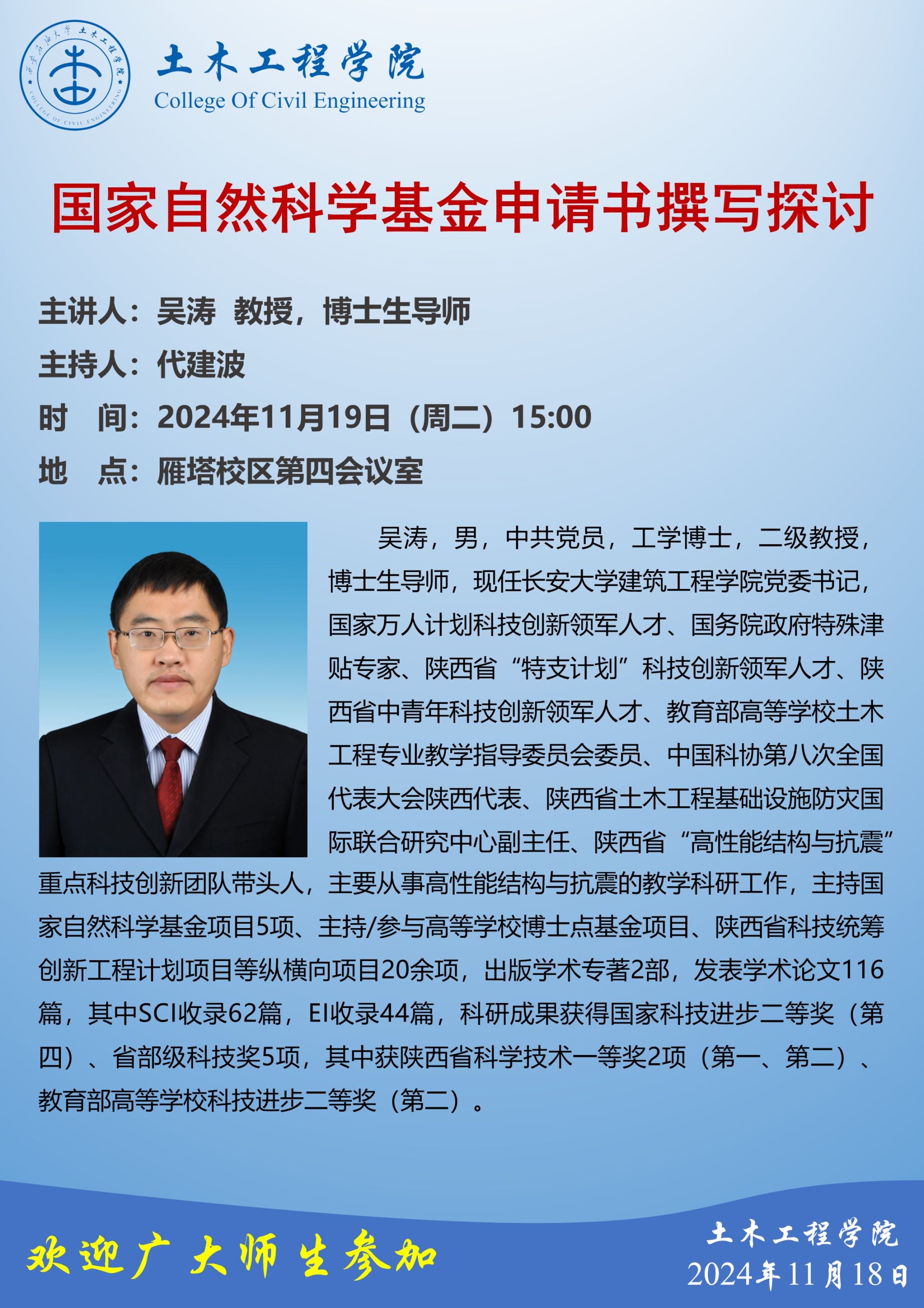 报告地点:雁塔校区会议中心第二会议室