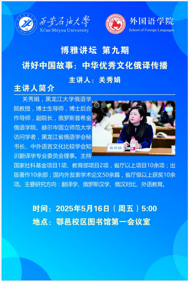 报告地点:鄠邑校区弘石报告厅