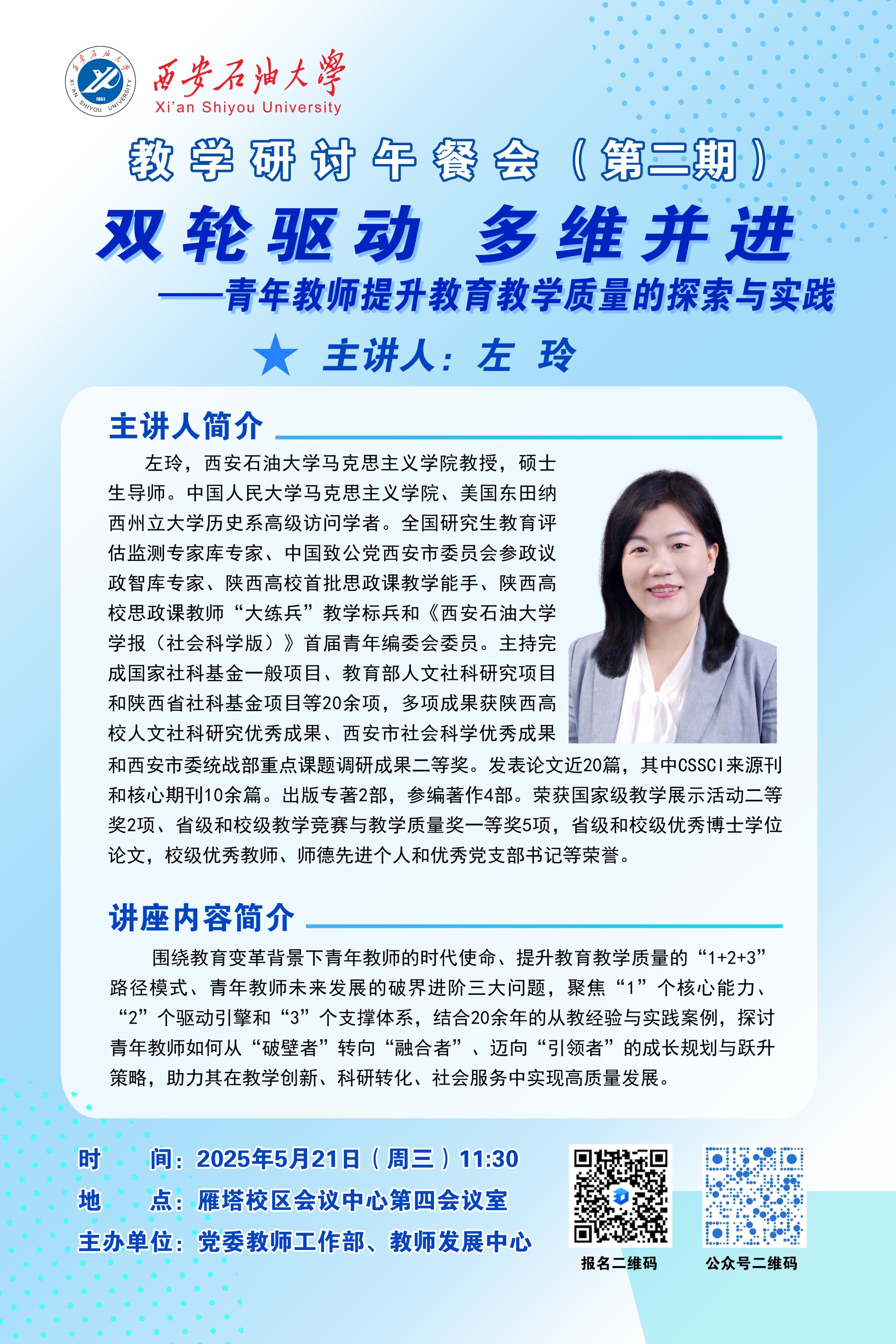 报告地点:雁塔校区会议中心第四会议室