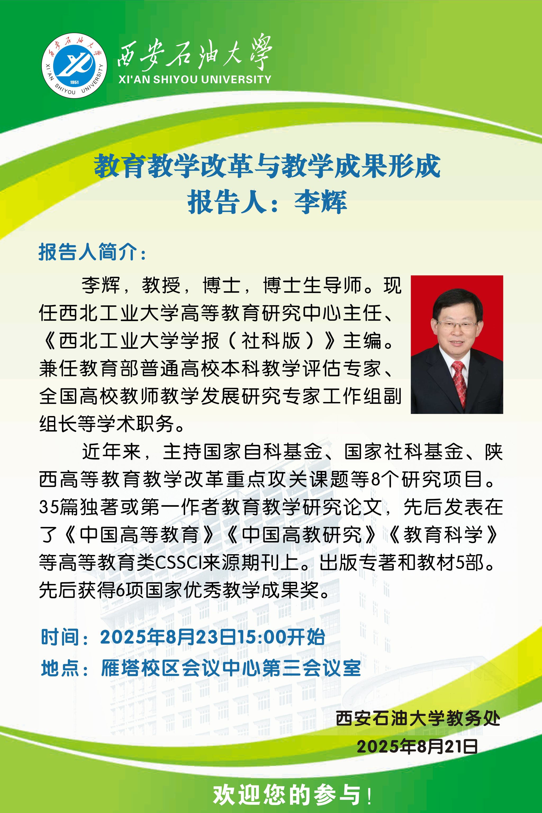 报告地点:雁塔校区会议中心第三会议室